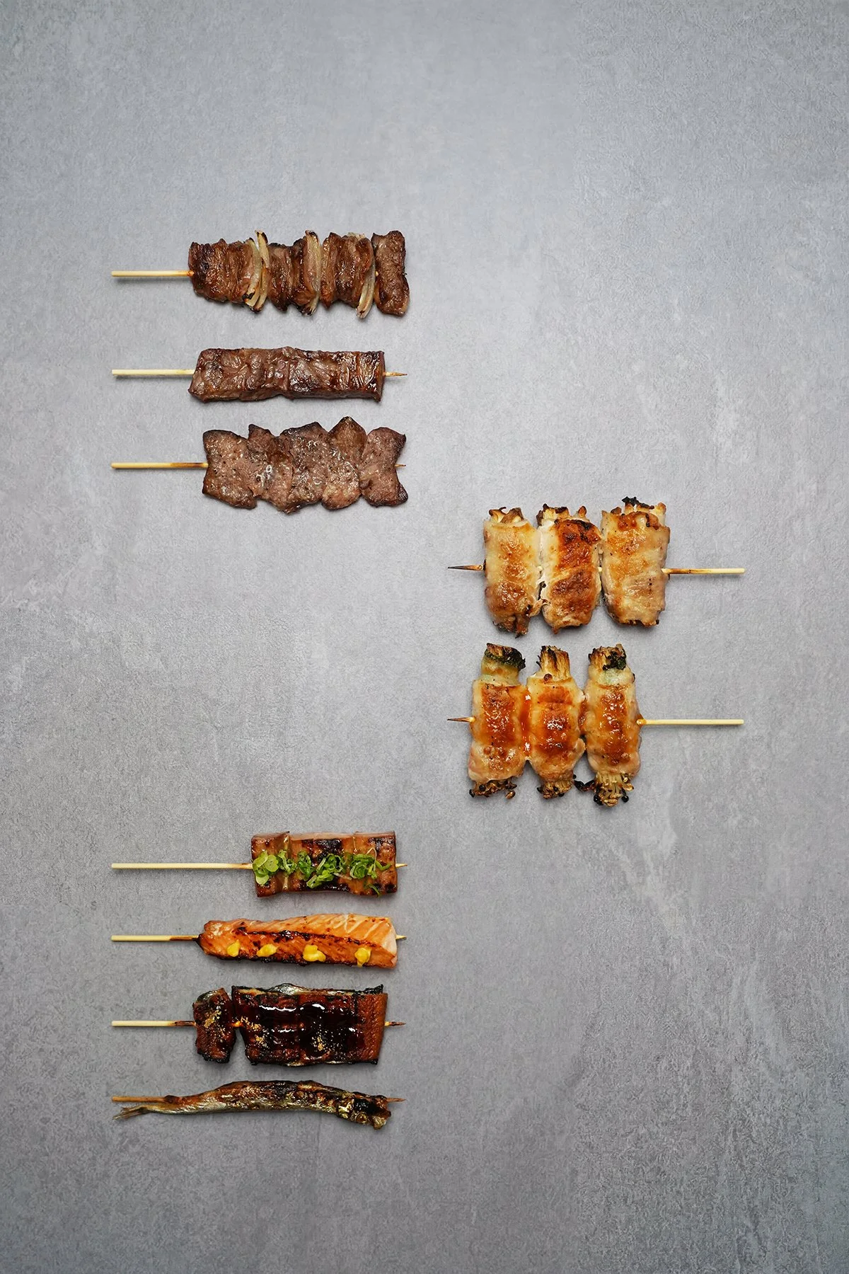 1. YAKITORI SET: THIGH, SHORT RIB, ZUCCHINI MENTAI MAYO